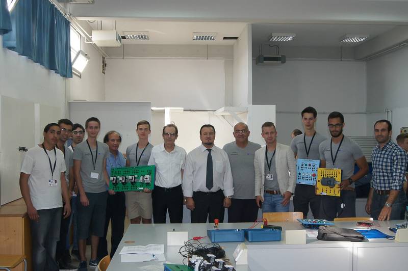 Das Technik-Team setzte sich aus zwei Auszubildenden Mechatronikern, zwei Elektronikern für Betriebstechnik und ihrem Lehrer, Studienrat Florian Brückner, zusammen. Schwerpunkt war die Konzeption und der unterrichtliche Einsatz von innovativen Lehr- und Lernmitteln im Elektrotechnikunterricht. Die Berufsschule Kronach leistete somit einen elementaren Beitrag zur curricularen Unterrichtsentwicklung in Zypern. Aus einzelnen Bauteilen fertigte man unterschiedliche Boards, die zielführend im zypriotischen Praxisunterricht, der Partnerschule „C´ Technical School“, eingesetzt werden können. Bei der Fertigung wurden verschiedene Arbeitstechniken vorgestellt. Hierzu zählten zum Beispiel die Dimensionierung von Schaltern und Leuchten, das Zuschneiden von Leitungen und Lötarbeiten. In der Projektsprache Englisch konnten die Zyprioten zielführend von den deutschen Schülern angeleitet werden. Am letzten Projekttag fand die messtechnische Erprobung der erstellten Lehr- und Lernmittel statt. Vorgestellt wurde dieses Erasmus+ Projekt auch dem zypriotischen Bildungsministerium und an der Technischen Schule in Larnaca. Diese beiden Seiten würdigten es sehr.