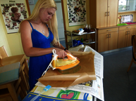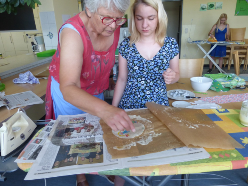 Am Mittwoch und Donnerstag wurden in Zweiergruppen Wachstücher in verschiedenen Größen und Formen, Honigpralinen sowie eine Quark-Fruchtspeise mit Honig hergestellt.