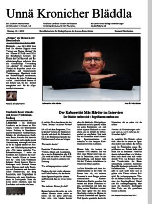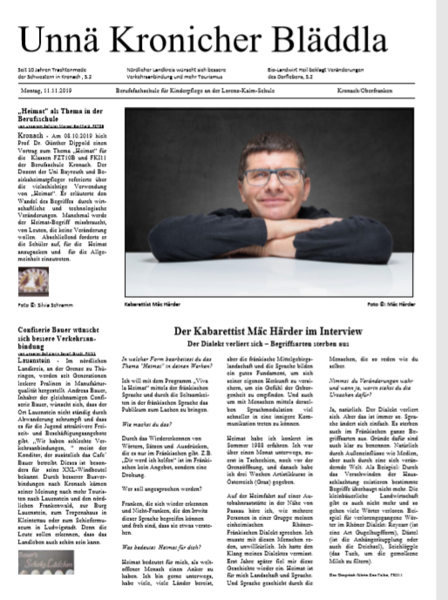 Die Fotos, Interviews und Berichte wurden so gekürzt, dass sie genau zwei DIN A 3 Zeitungsseiten von „Unnä Kronicher Bläddla“ füllten.